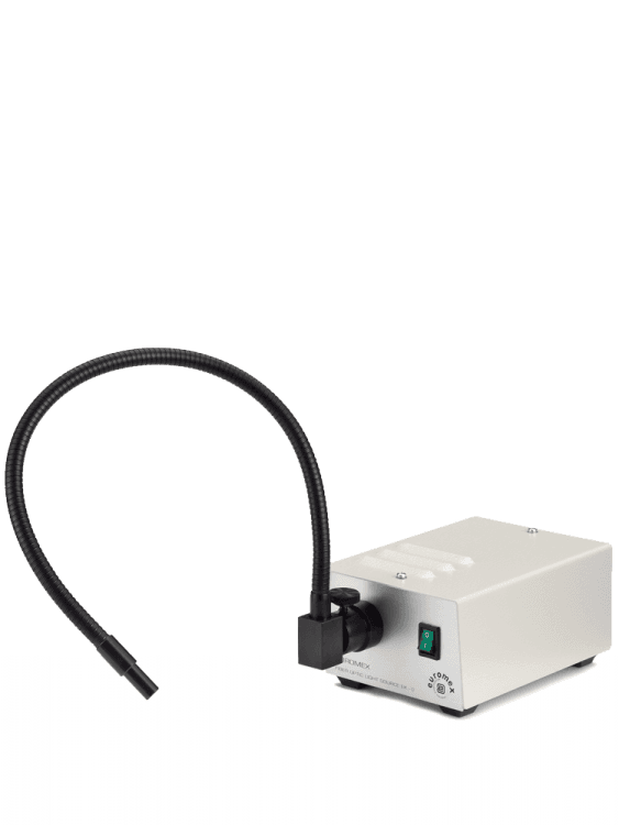 For stereo microscopy choosing the right illumination is essential to obtain a perfect image with maximum resolution. The Euromex LE.5209 is a compact and economical cold light source a single self-sustaining glass fiber light guide for general use